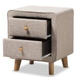 Transform your bedroom with the stylish 2-Drawer Mid-Century Fabric Nightstand. Its sleek and luxurious design adds a touch of elegance to your space, making it a perfect bedside companion.