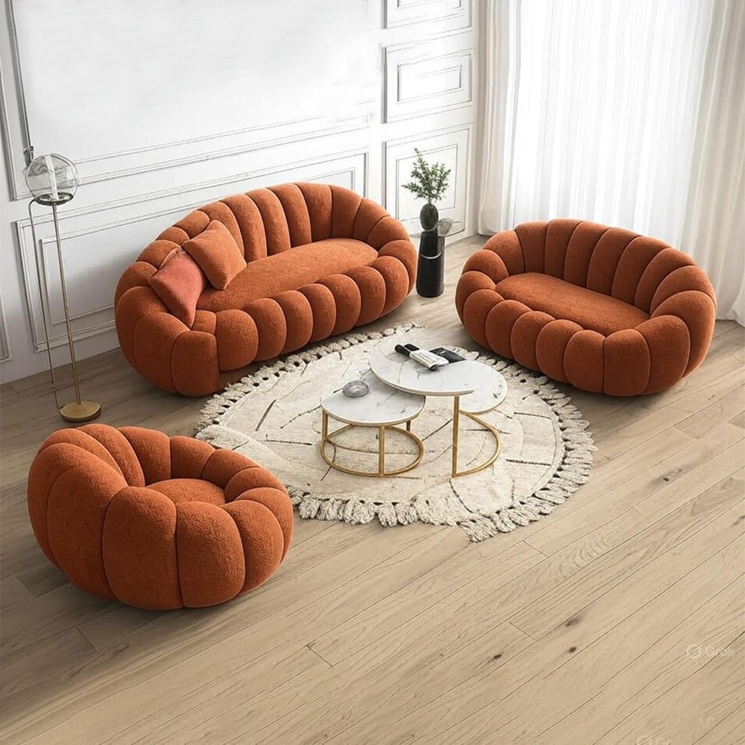 Whether for family gatherings or relaxing evenings, the Pumpkin Sofa Set transforms your living room into a cozy yet stylish retreat.
