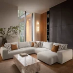 This modular sofa collection allows you to customize your ideal layout — whether as a corner configuration or an expansive lounge suite. Each piece is crafted with precision and upholstered in premium fabrics, bringing a refined and welcoming charm to your home.