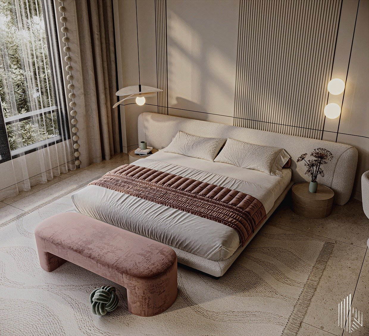 Use layered lighting – a ceiling lamp plus bedside lamps for a warm, cozy feel.