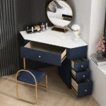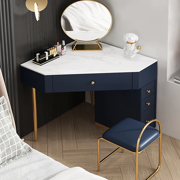 Add a touch of magic and elegance to your bedroom with the Magical Makeup Vanity Table from Posh House Furniture. Designed to blend beauty with practicality, this charming vanity features a corner-friendly design that maximizes your space while providing a stylish spot to get ready. The white and blue contrast finish adds a refreshing pop of color, giving your room a serene and modern look.