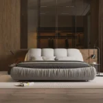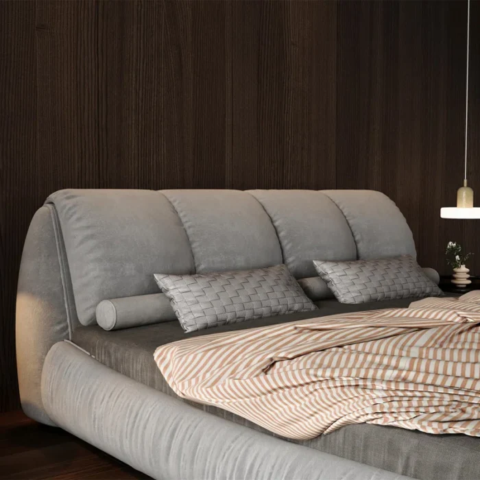 - Elegant Design: The pleated detailing on the bed body and tail adds sophistication and artistic flair to your bedroom. The fully upholstered headboard, crafted with high-quality polyester fabric, provides a luxurious feel while being soft, smooth, and durable—resistant to wrinkles, stains, and wear.