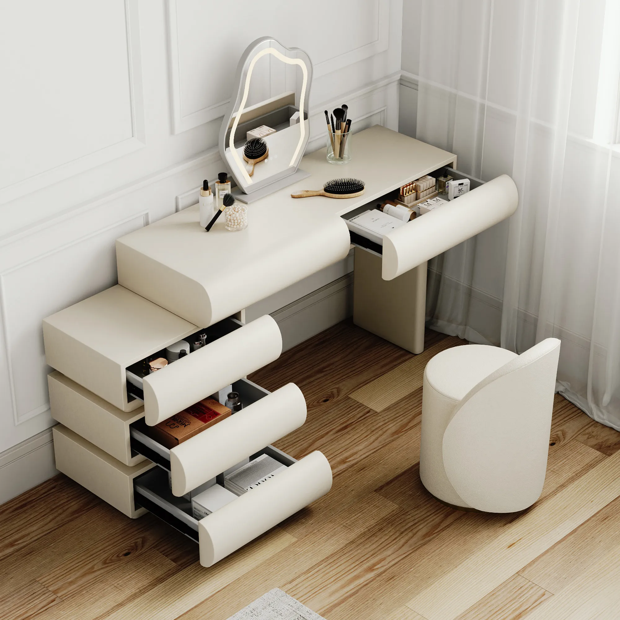 Elevate your bedroom with this modern luxury makeup vanity set from Posh House Furniture, designed to blend elegance and functionality. Crafted from white pine wood veneer, it features a sleek, minimalist design that complements any contemporary interior. Equipped with multiple drawers and a comfortable stool, this vanity set ensures a practical and stylish solution for your daily beauty routine.