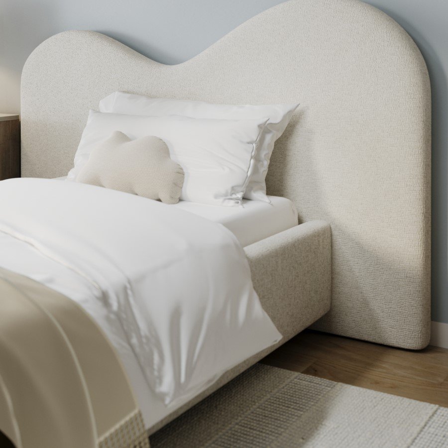 Wide curved headboard with a modern, elegant silhouette