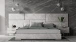 Nova Domus Marbella – Italian Modern Grey Marble Bed with 2 Nightstands & Luxurious Marble-Inspired Headboard