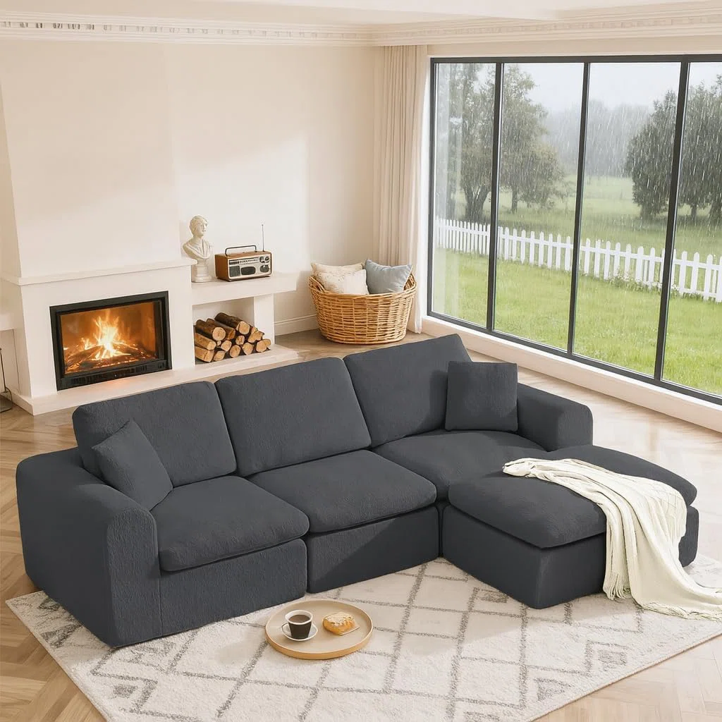Elevate your living space with this modular sectional cloud couch, where style meets ultimate comfort. Upholstered in soft corduroy with a double-layer finish, it delivers plush seating and versatile functionality for living rooms, bedrooms, apartments, dorms, or offices. The generously sized chaise and modular components allow for endless configurations, adapting to your space and lifestyle.