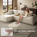 This sectional sofa combines sculptural softness with practical innovation. Wrapped in breathable woven fabric and generously filled with cold-cured high-density foam, it offers a balanced seating experience — plush yet structured, inviting yet supportive.