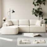 Its adaptable modular composition allows you to transform the layout effortlessly, whether into a welcoming L-shape or a spacious square formation. Rounded contours soften the silhouette while enhancing safety, making it as functional as it is elegant.