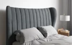 Perfect for busy modern homes, the Nordin bed offers about 25 cm of under-bed clearance, providing much-needed storage space for your belongings. Choose between two sumptuous fabric options: luxurious Platinum Grey linen or rich Midnight Blue velvet.