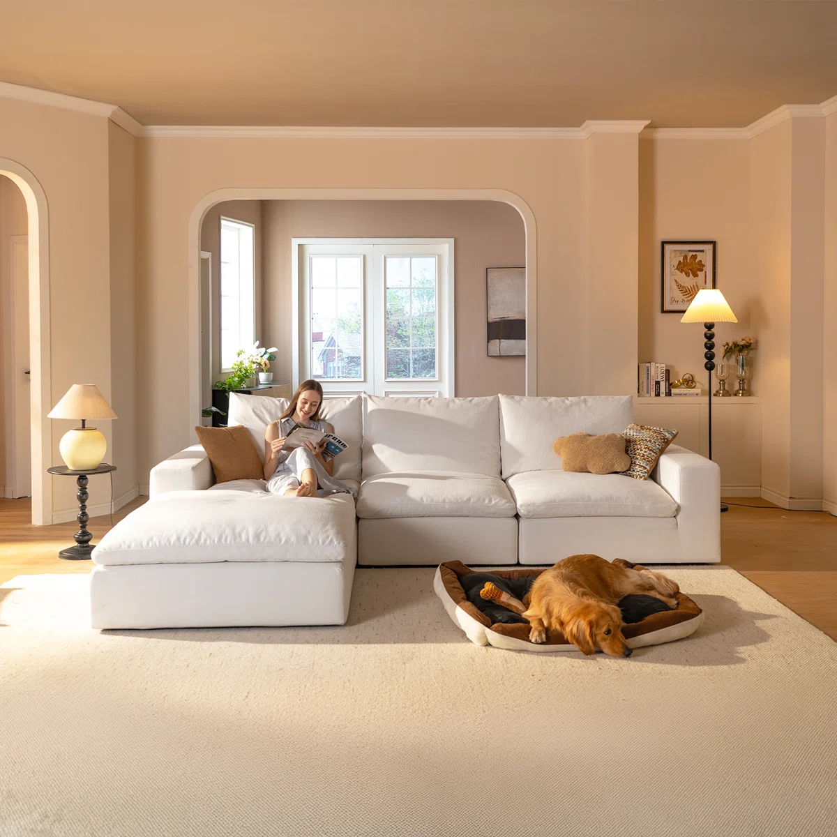 Oversized L-shaped modular design for spacious seating